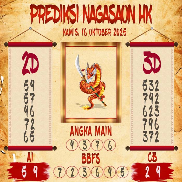 Prediksi Nagasaon HK Kamis 16 Oktober 2025
